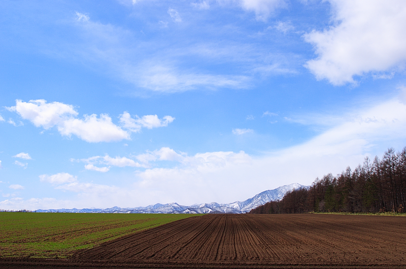 4月。寒かった冬も終わり、大地がようやく目が覚ます季節。畑に残った雪は溶け、また緑の大地が戻ってきました。