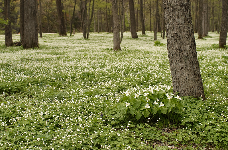 5月。かでる工房近所の森の中に、今年もまた白い花畑が姿を現しました。誰も気づかなくても、約束のように白い花が咲き乱れます。