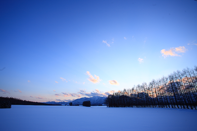 夕暮れ、厳冬の十勝の空はグラデーション。長い長い冬の夜が始まります。